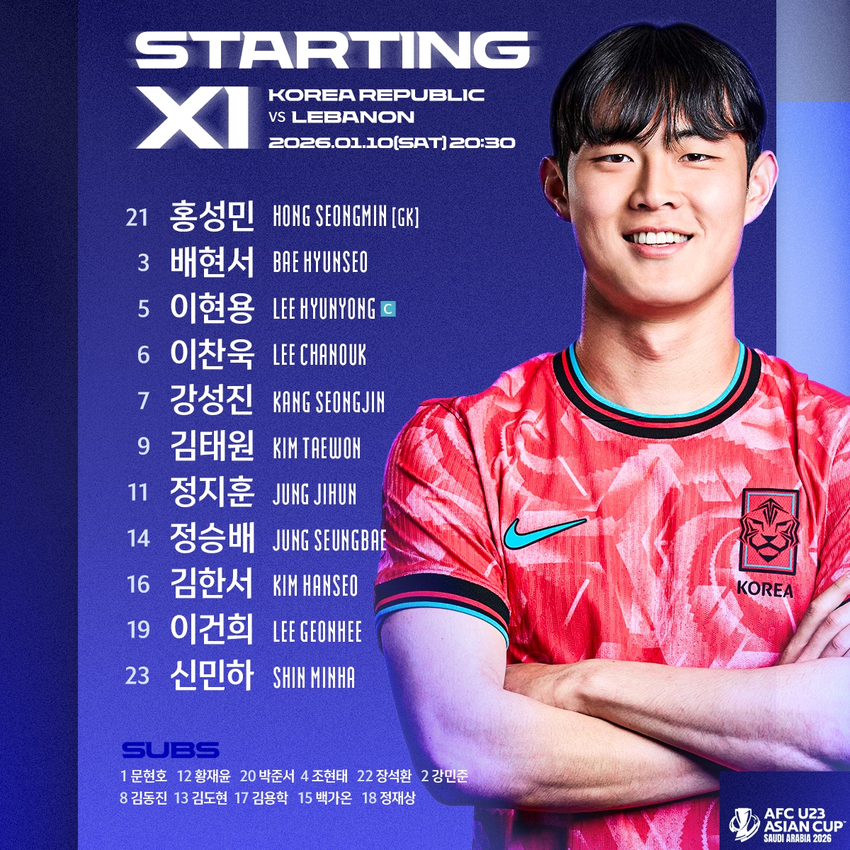 ‘강성진 선발’ U-23 대표팀, 레바논전 선발명단 발표