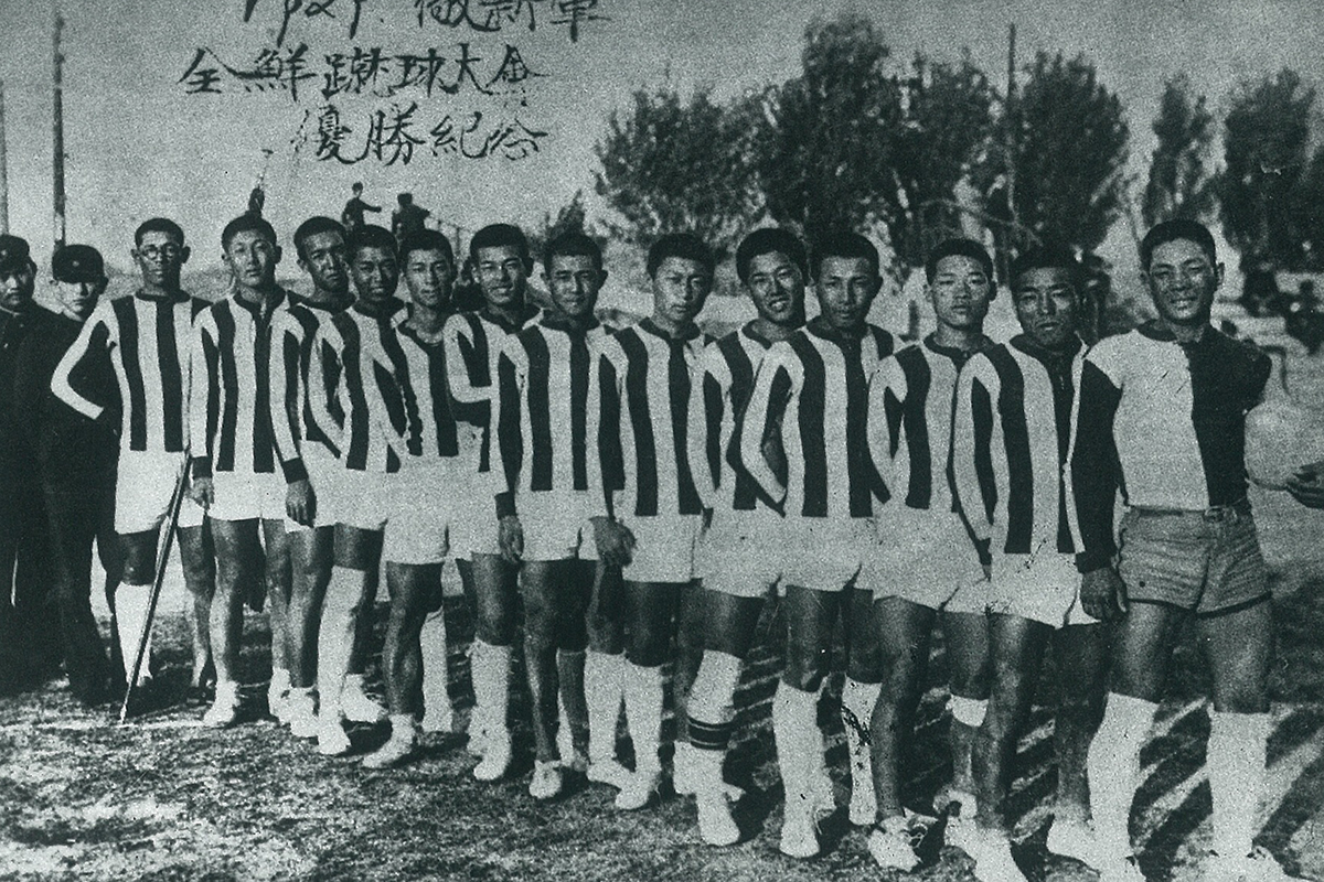 1938평양에서 열린 3도시(서울, 평양, 함흥) 대항전에서 우승한 함흥축구단 선수와 임원들.