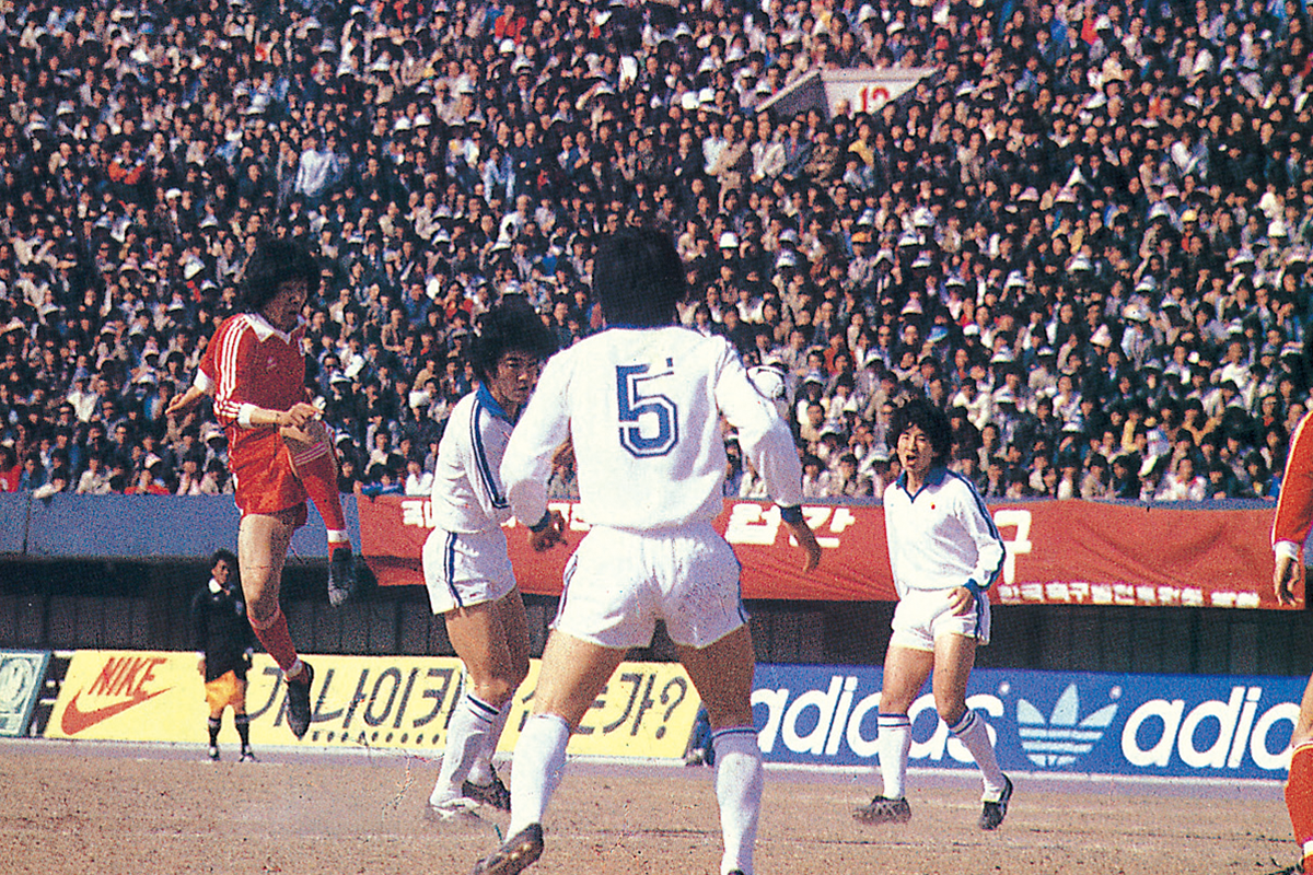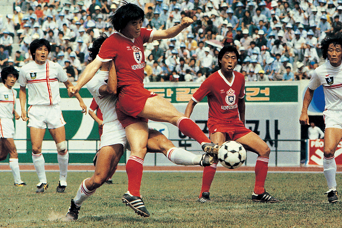 19842년째를 맞이하는 수퍼리그(K리그 초창기 명칭)에서는 호화 멤버를 자랑하는 대우 로얄즈가 정상에 올랐다. 사진은 대우와 할렐루야의 경기 모습.