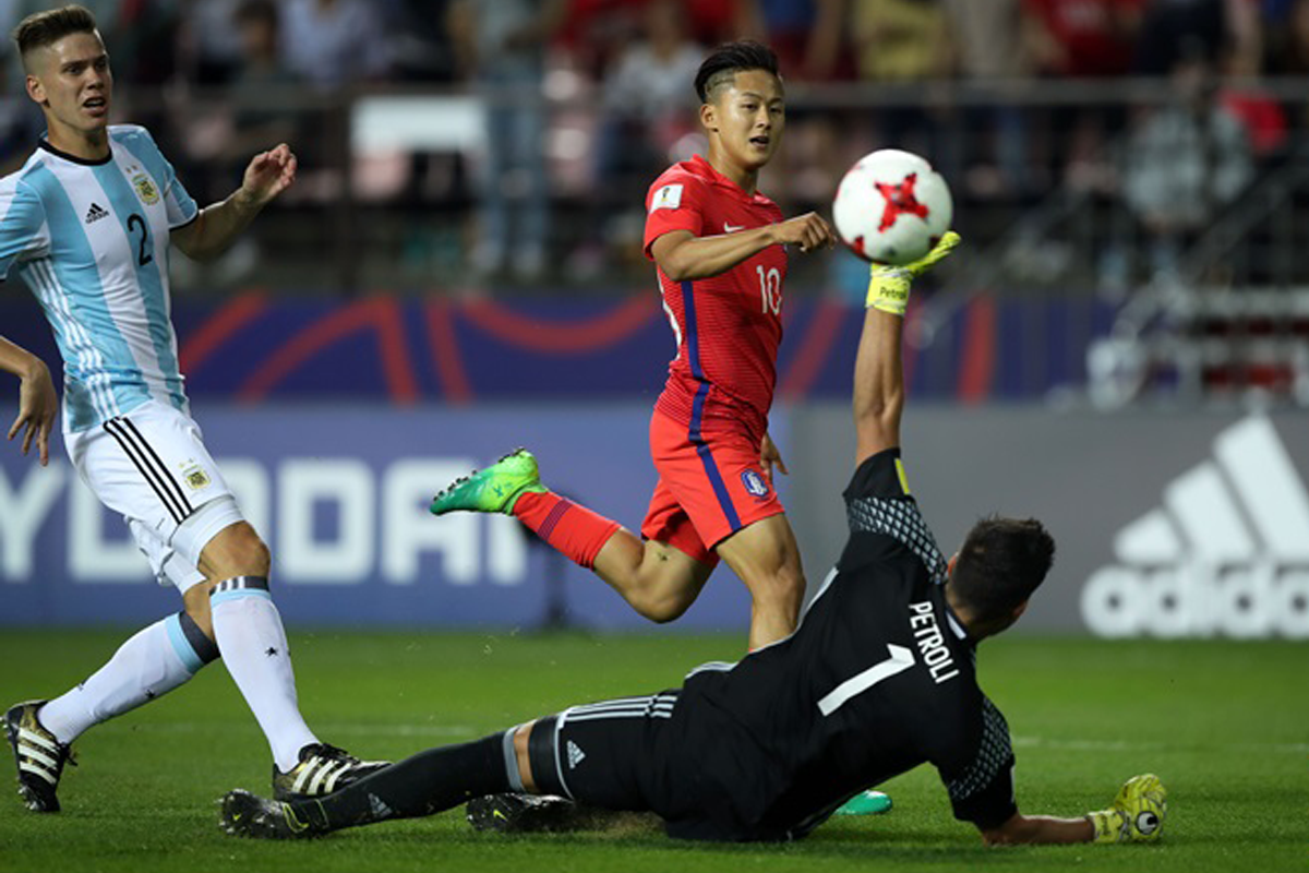 2017FIFA U-20 월드컵이 국내 6개 도시에서 열렸다. 한국은 16강에 진출했다. 이승우가 아르헨티나전에서 칩슛으로 득점하는 장면.