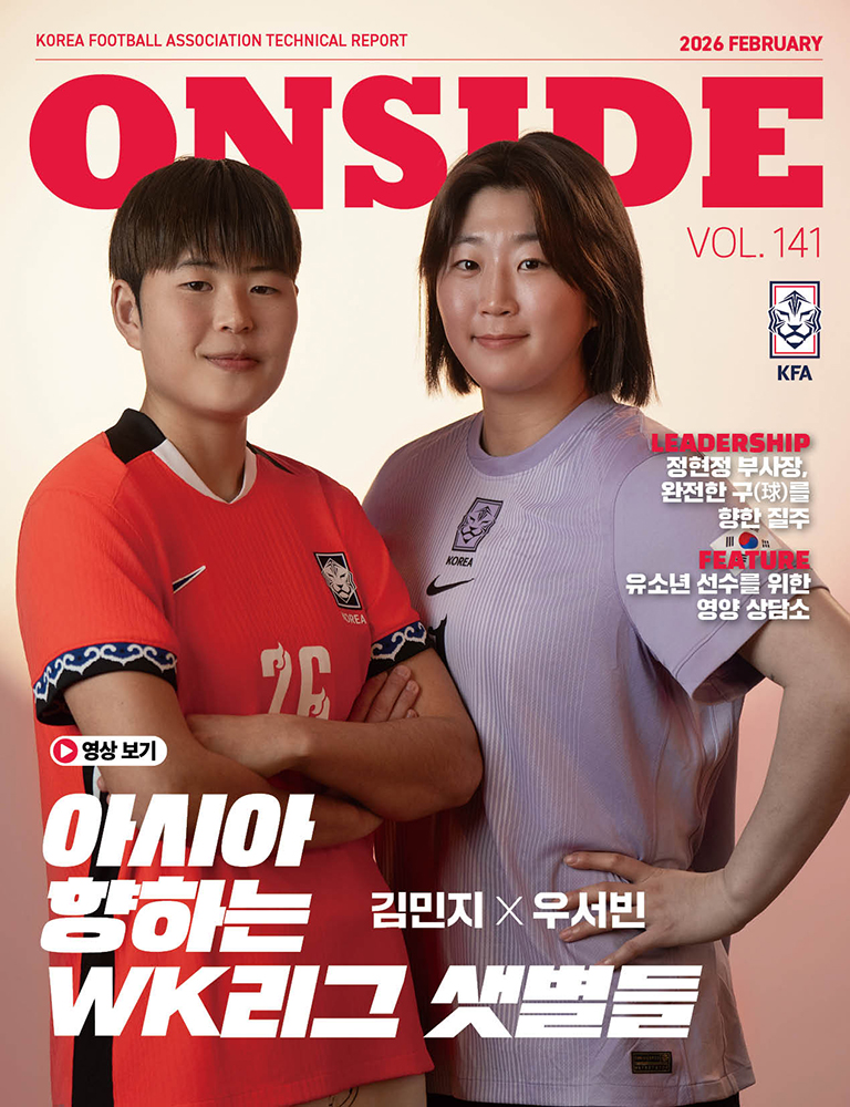 ONSIDE는 대한축구협회가 발행하는 축구 기술보고서 겸 매거진입니다. 반칙이 적용되지 않는 바른 위치라는 의미로 오프사이드의 반대말입니다. KFA와 한국 축구도 반칙 없이 바른 위치에서 바른 마음가짐으로 활약하겠다는 함축적 의미를 내포하고 있습니다.