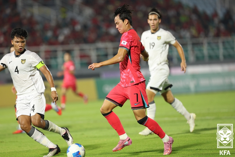 이민성 감독은 앞선 두 경기와 마찬가지로 3-4-3 포메이션을 선택했다. 공격진에는 정재상(대구FC)을 중심으로 박승호(인천유나이티드)와 정지훈(광주FC)이 양 측면에 포진했다. 중원은 ‘주장’ 이승원(김천상무)과 황도윤으로 구축됐으며, 양쪽 측면 수비수로는 최우진(전북현대)과 강민준(포항스틸러스)이 배치됐다. 3백은 김지수(카이저스라우테른)-최석현(울산 HD)-이현용(수원FC)으로 형성됐고, 최후방은 문현호(김천상무)가 지켰다.