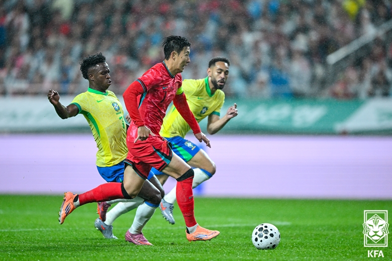 홍명보 감독이 이끄는 A대표팀(FIFA랭킹 23위)은 10일 오후 8시(이하 한국시간) 서울월드컵경기장에서 열린 브라질(6위)과의 ‘하나은행 초청 축구국가대표팀 친선경기’에서 이스테방과 호드리구에 멀티골, 비니시우스에 한 골을 내주며 0-5로 패했다. 한국은 오는 14일 오후 8시 같은 장소에서 파라과이를 만난다.