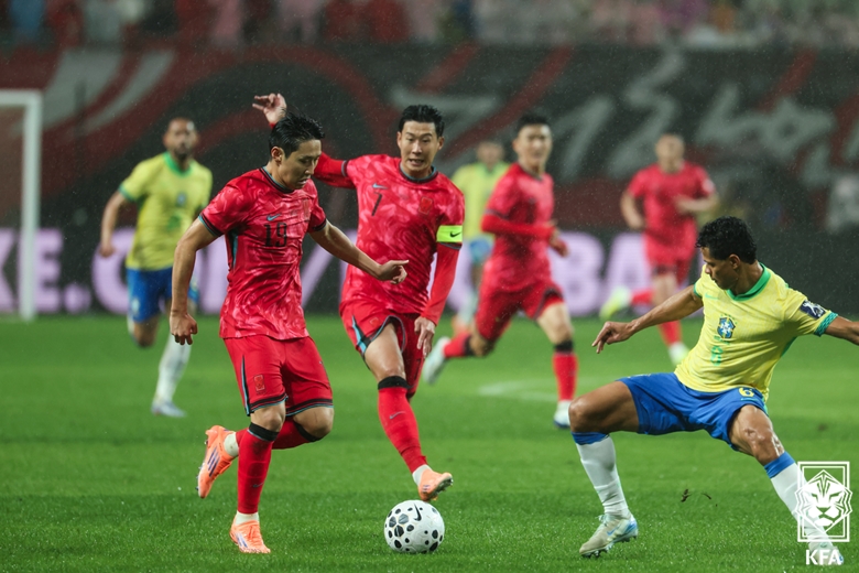 이에 홍명보 감독은 후반전 돌입과 동시에 황인범 대신 옌스 카스트로프(묀헨글라트바흐)를 투입하며 반전을 꾀했다. 하지만 오히려 브라질이 후반 2분 만에 김민재의 수비 실수를 틈타 이스테방의 마무리로 세 번째 골을 장식했고, 2분 뒤에는 호드리구까지 멀티골을 뽑아내며 점수는 0-4까지 벌어졌다.