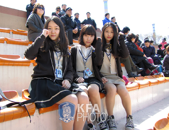 그런데 지난 16일 화사한 봄 날씨 속에서 노원 마들 스타디움에서 치러진 '2011 대교 눈높이 고등부 서울 북부리그' 경신고와 재현고와의 경기 도중 관중석에서 교복을 입은 상큼 발랄한 여고생 3명을 발견했다.