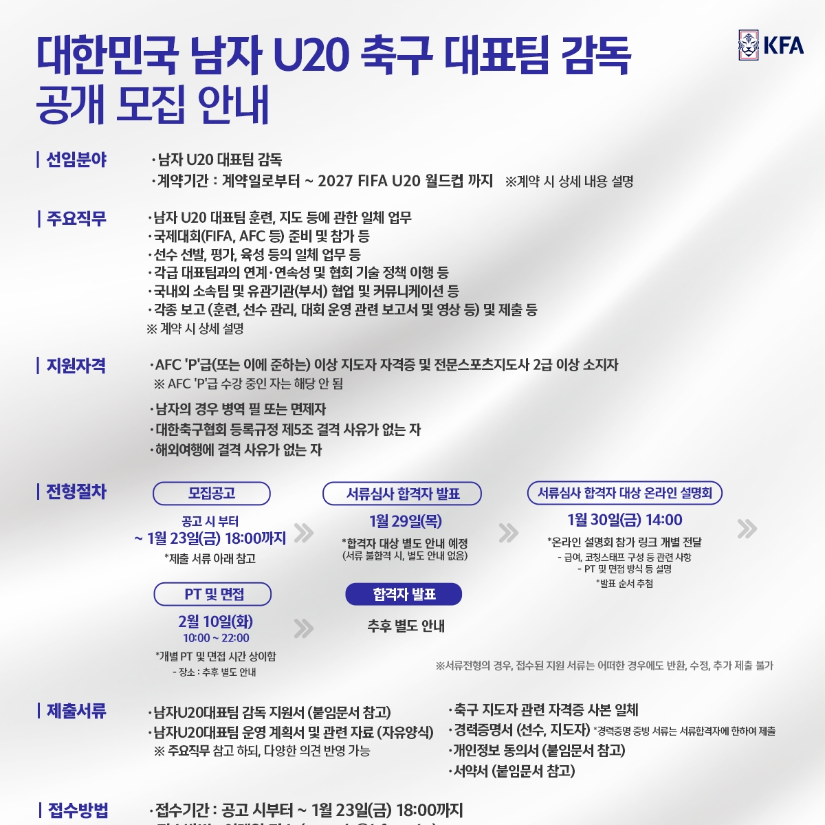 대한축구협회, 남자 20세 이하 대표팀 감독 공개 채용