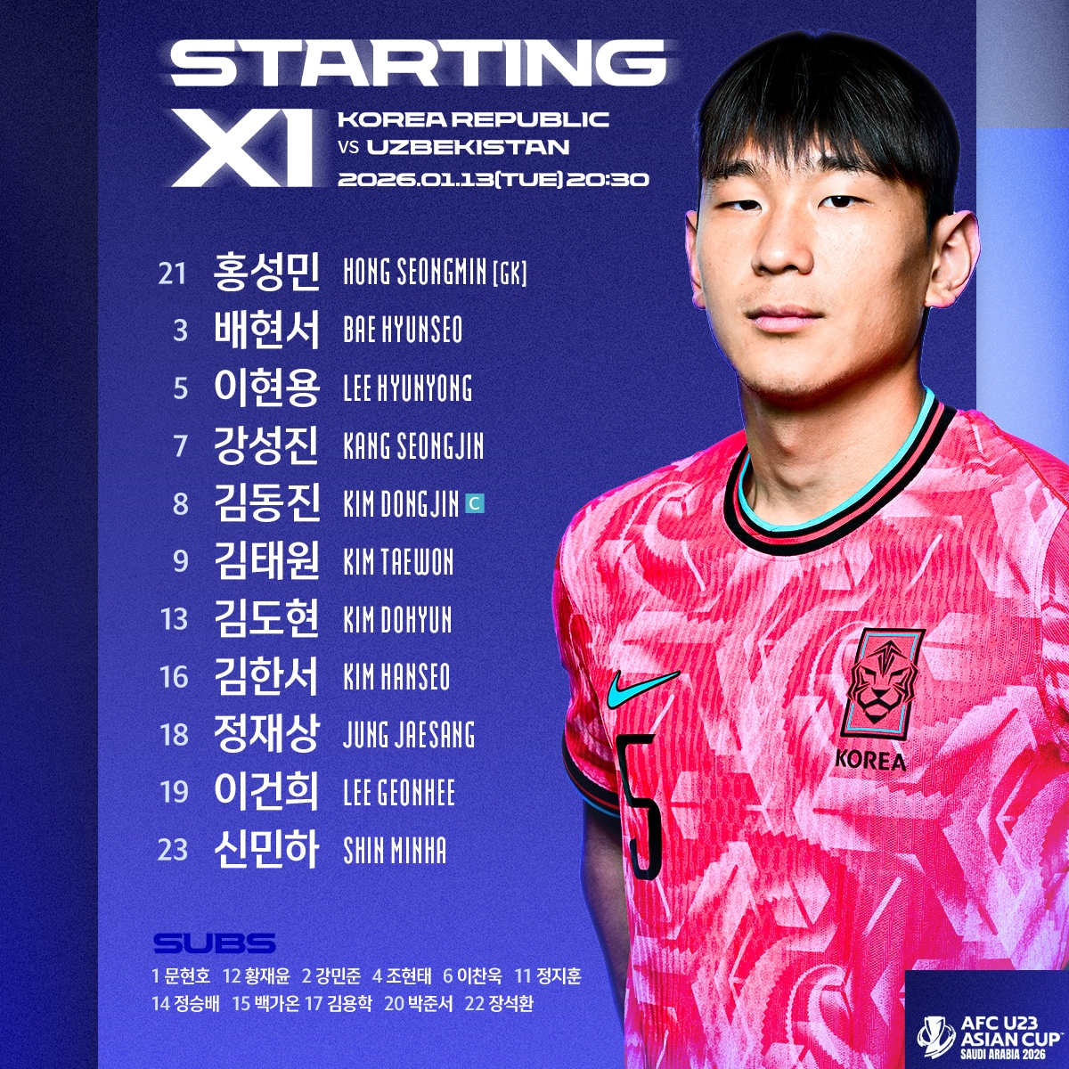 ‘이현용 선발’ U-23 대표팀, 우즈벡전 선발명단 발표
